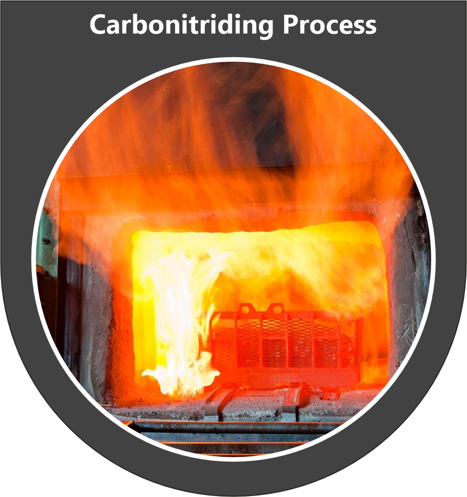 Carbonitriding is process of simultaneously inducing both carbon & nitrogen into the surface of a component.. Carbonitriding is an ideal process for the hardening of small components, where great resistance to wear is required and generally operating where the case depth does not exceed 0.025” – 0.030”